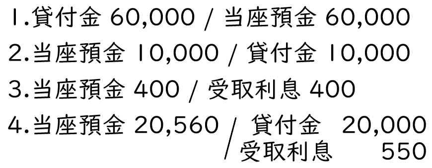 - 貸付金に対する利息として400円が当座預金口座に入金された。