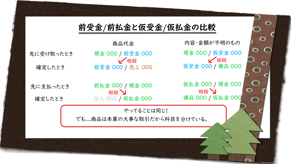前受金/前払金と仮受金/仮払金はどう違うモン?