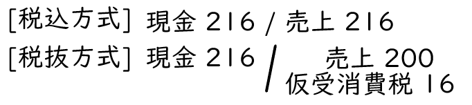 - 仮受消費税=216円×8%=16円